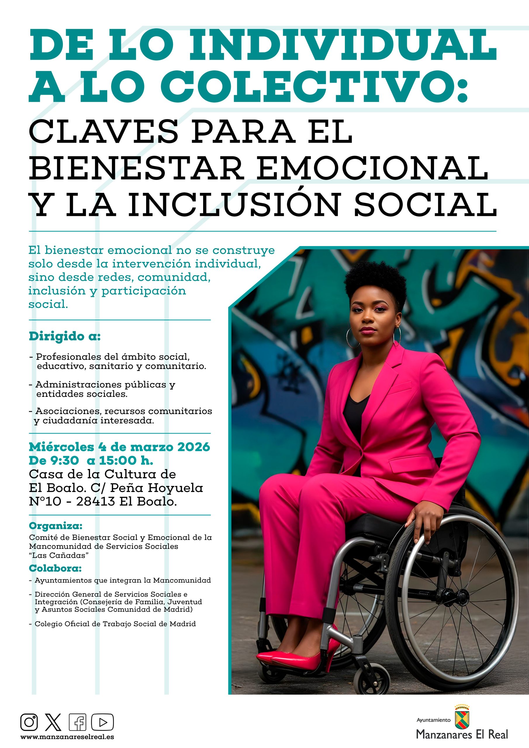 La Casa de la Cultura de El Boalo acogerá el miércoles 4 de marzo, la jornada “De lo individual a lo colectivo: claves para el bienestar emocional y la inclusión ...