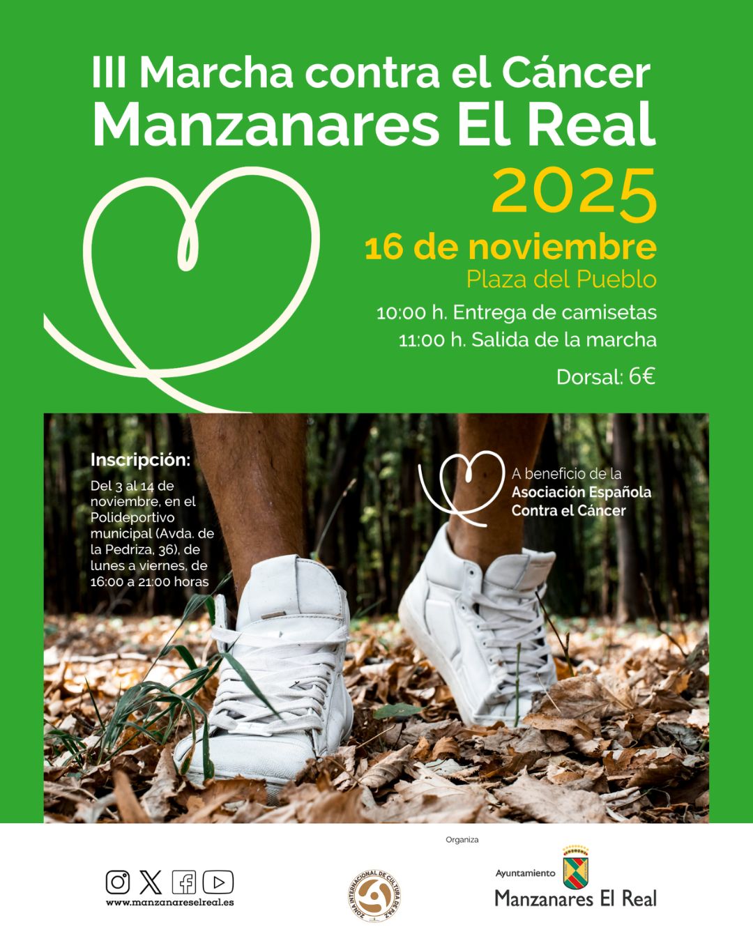El próximo domingo 16 de noviembre de 2025, Manzanares El Real acogerá la III Marcha contra el Cáncer, una iniciativa solidaria organizada por el Ayuntamiento de Manzanares El Real