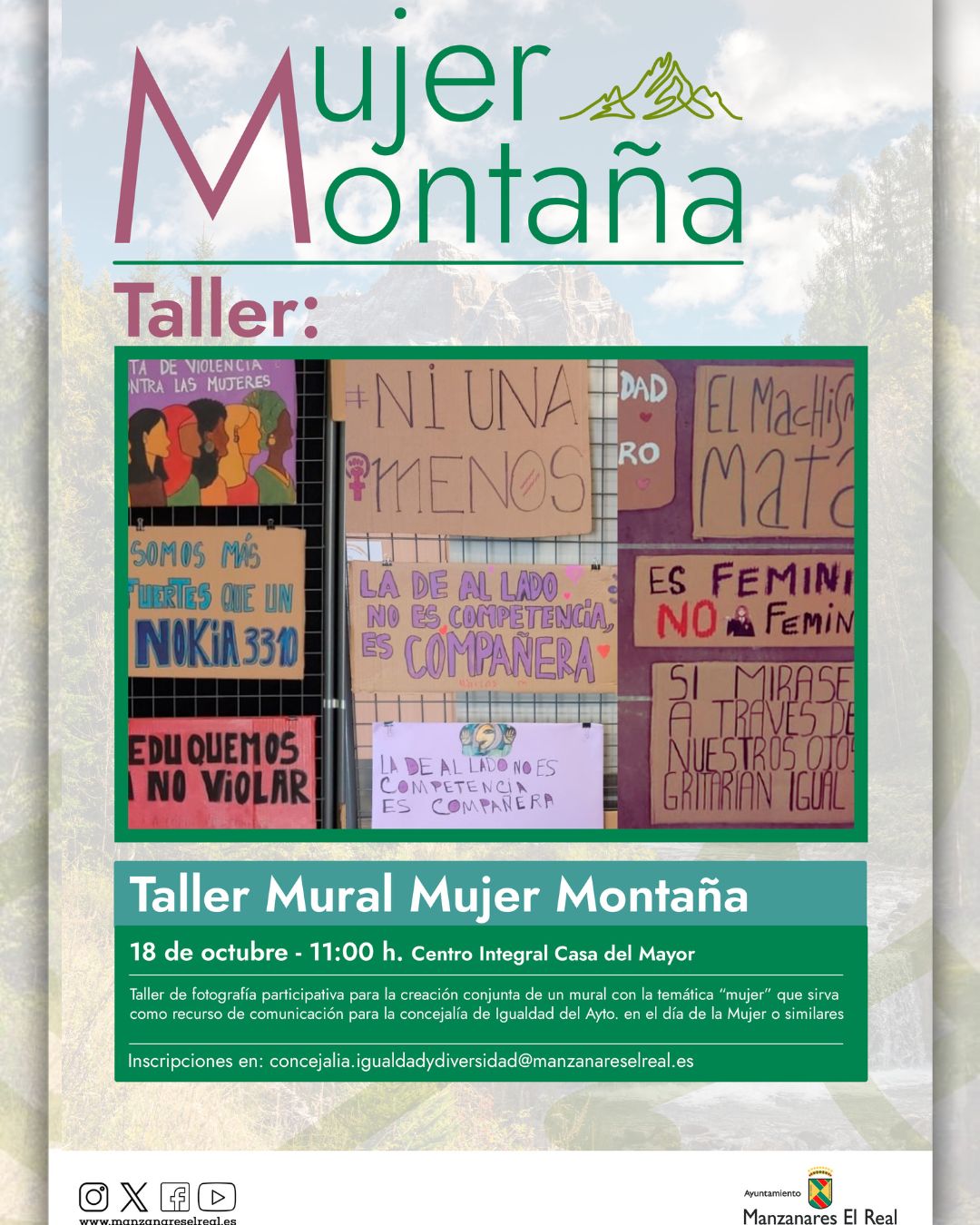 Taller Mural Mujer Montaña Taller de fotografía participativa para la creación conjunta de un mural con la temática “mujer” que sirva como recurso de comunicación para la concejalía de Igualdad ...