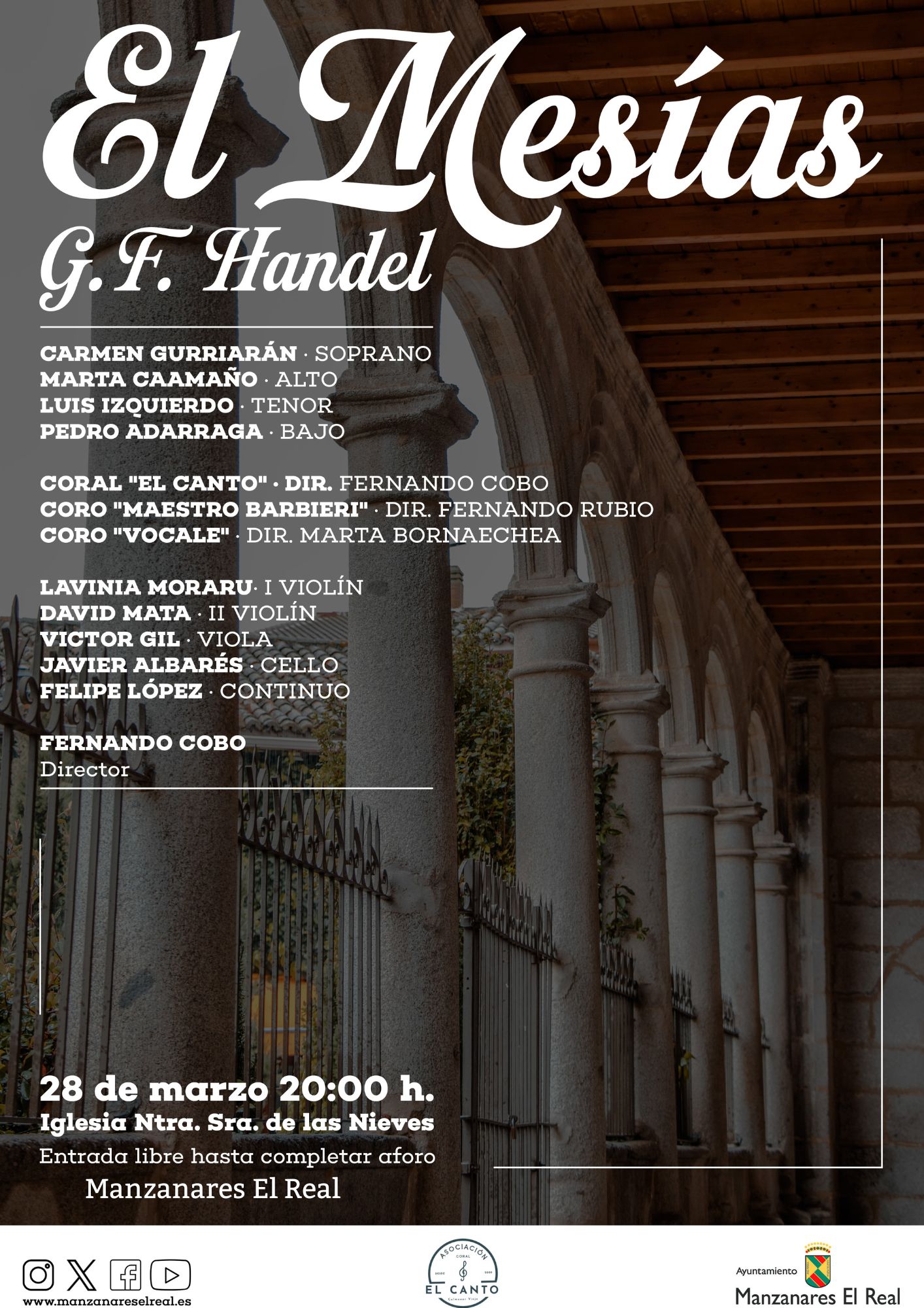 Iglesia de Ntra. Sra. de las Nieves Plaza del Sagrado Corazón, 1., Manzanares El Real, Madrid, EspañaManzanares El Real acogerá el próximo sábado 28 de marzo a las 20:00 horas un concierto muy especial con la interpretación de El Mesías, de Handel. La cita tendrá lugar en ...