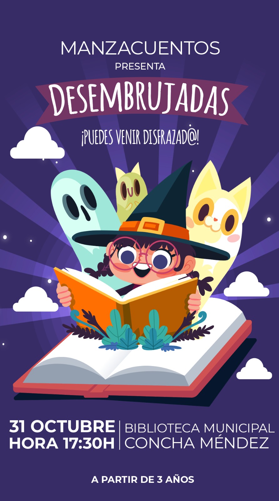 Viernes, 31 de octubre de 2025 Biblioteca Municipal “Concha Méndez” 17:30 h   Este 31 de octubre a las 17:30 h, ven a disfrutar de una mágica sesión de cuentacuentos ...