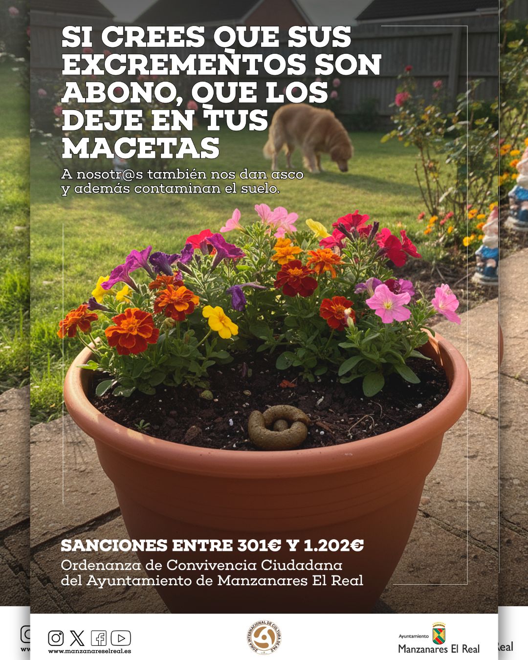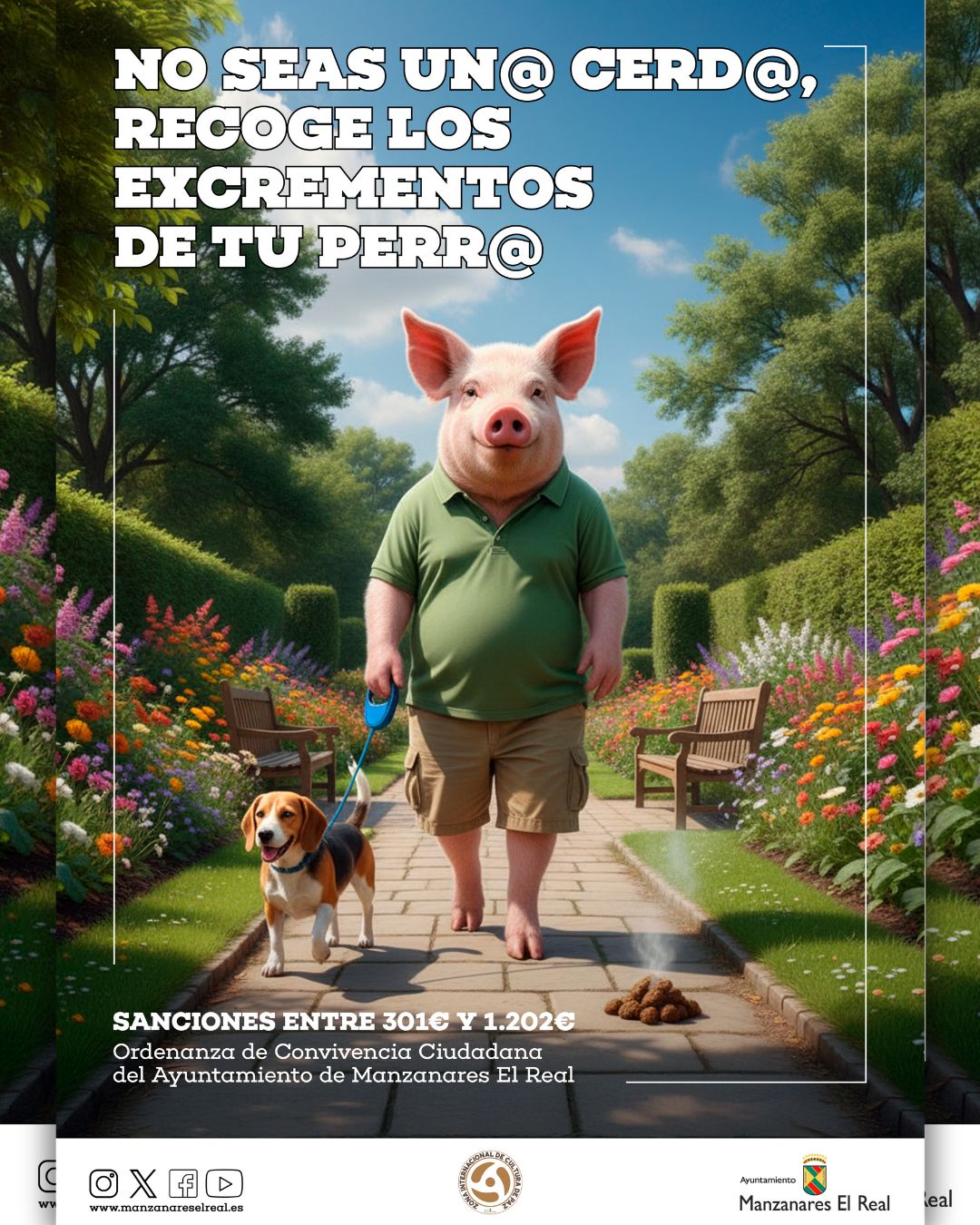El Ayuntamiento de Manzanares El Real ha puesto en marcha una nueva campaña de concienciación ciudadana para recordar la importancia de recoger los excrementos de las mascotas en la vía pública