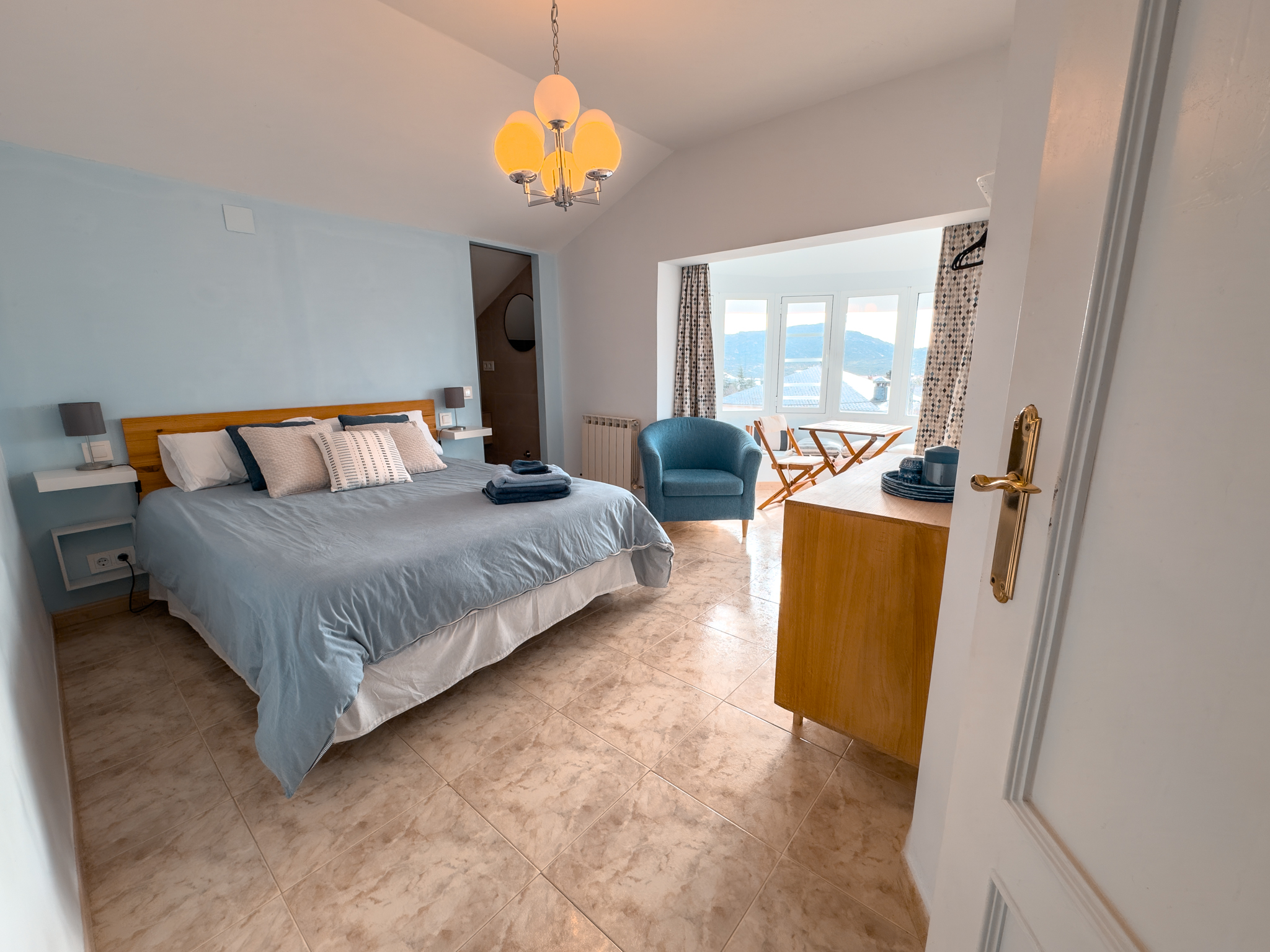 La vivienda, de aproximadamente 270 metros cuadrados, tiene capacidad para 12–13 personas y dispone de seis habitaciones y amplias zonas comunes. “Tengo tres salones: uno de televisión, otro con chimenea y otro con una mesa grande donde se puede desayunar o comer, tiene piscina, terraza, jardín…” Un espacio pensado para grupos y familias que buscan compartir tiempo y descanso. Aunque, también hay quien la alquilado para trabajar y disfrutar de la tranquilidad que aporta la casa.