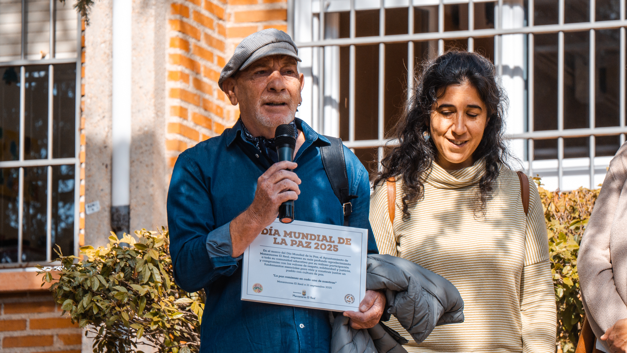Asimismo, se reconoció la labor de Valentín Oliveros, impulsor y motor de la Cultura de Paz en Manzanares El Real, por su dedicación constante a promover valores de diálogo, entendimiento y convivencia en el municipio. Su trabajo ha contribuido de manera decisiva a que Manzanares sea un referente en iniciativas de educación y sensibilización por la paz.