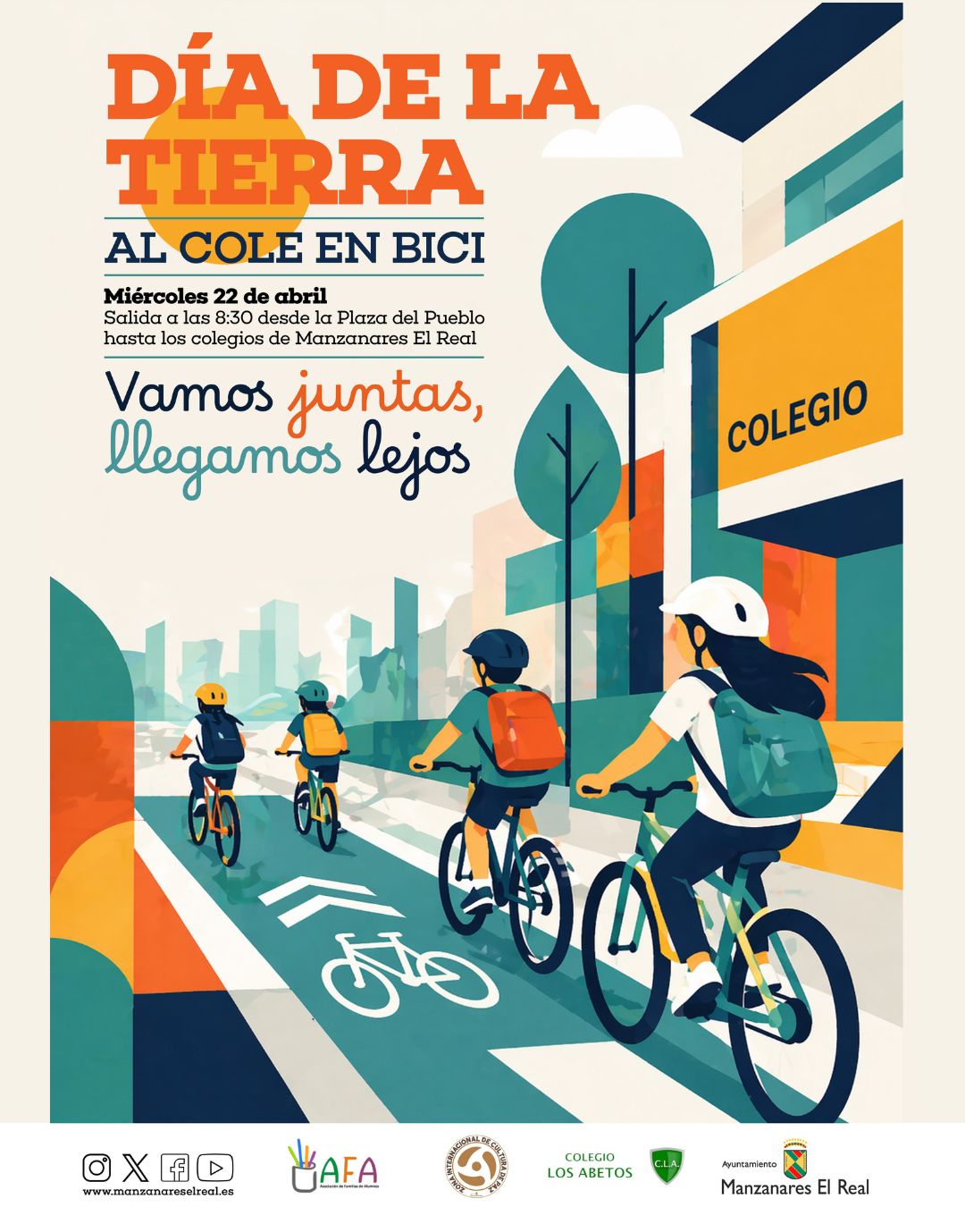 Por el Día de la Tierra, que se celebra cada 22 de abril, en Manzanares El Real va a tener lugar la iniciativa “Al cole en bici”, en la que participarán alumnas/os y familias de los centros Virgen de Peña Sacra y Los Abetos.