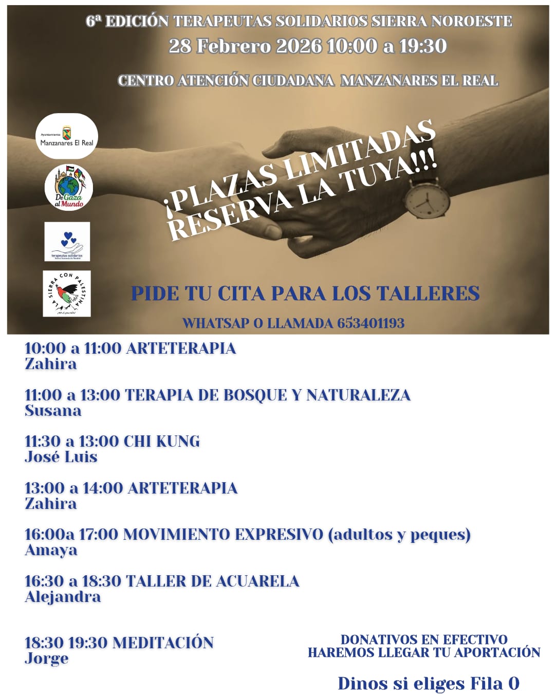 Pide tu cita para participar en los talleres por WhatsApp o llamada al 653401193  (donativos en efectivo)
