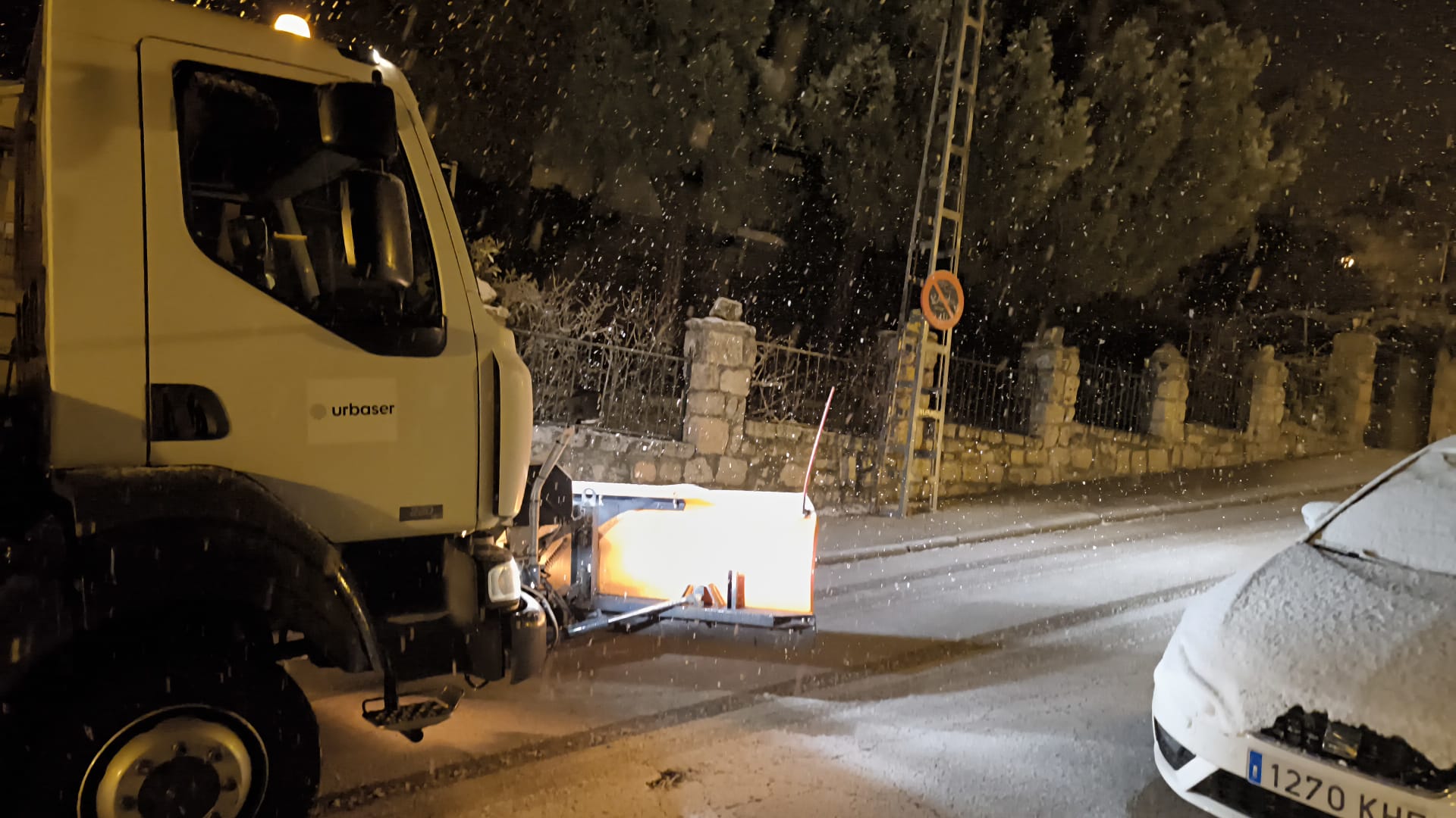 Debido a la nevada, desde primera hora de la mañana el camión quitanieves se encuentra esparciendo sal y limpiando las calles de nieve.