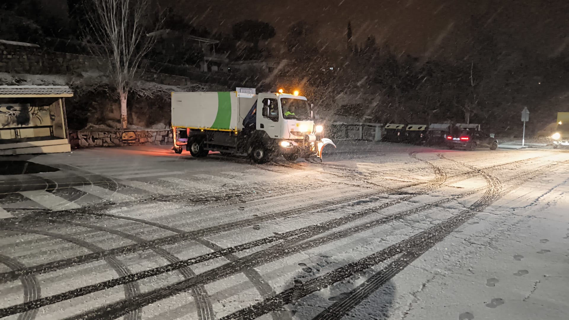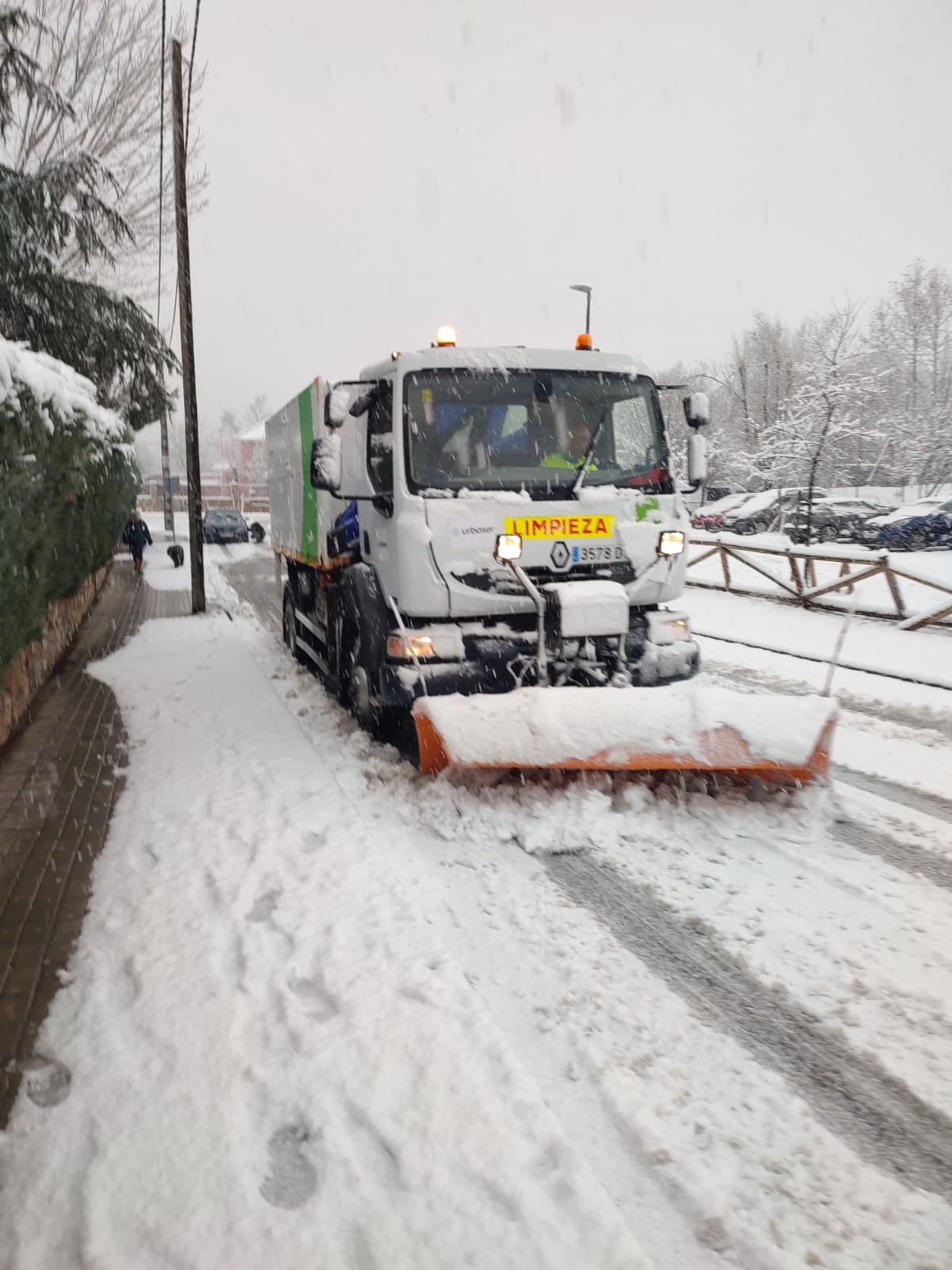 Todos los recursos disponibles del Ayuntamiento de Manzanares El Real: Jardines, Obras y limpieza están trabajando sobre la vía publica esparciendo sal y quitando la nieves según el Plan de Inclemencias Invernales:
