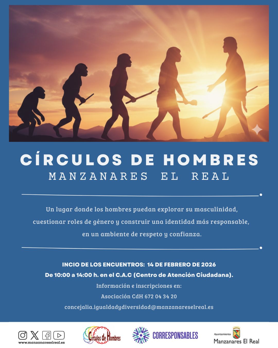 El Ayuntamiento de Manzanares El Real pone en marcha la segunda edición del Círculo de Hombres, una iniciativa impulsada desde el Área de Igualdad que ofrece un espacio de encuentro y reflexión dirigido a hombres interesados en revisar los modelos tradicionales de masculinidad, trabajar la gestión emocional y avanzar hacia relaciones más igualitarias y corresponsables.