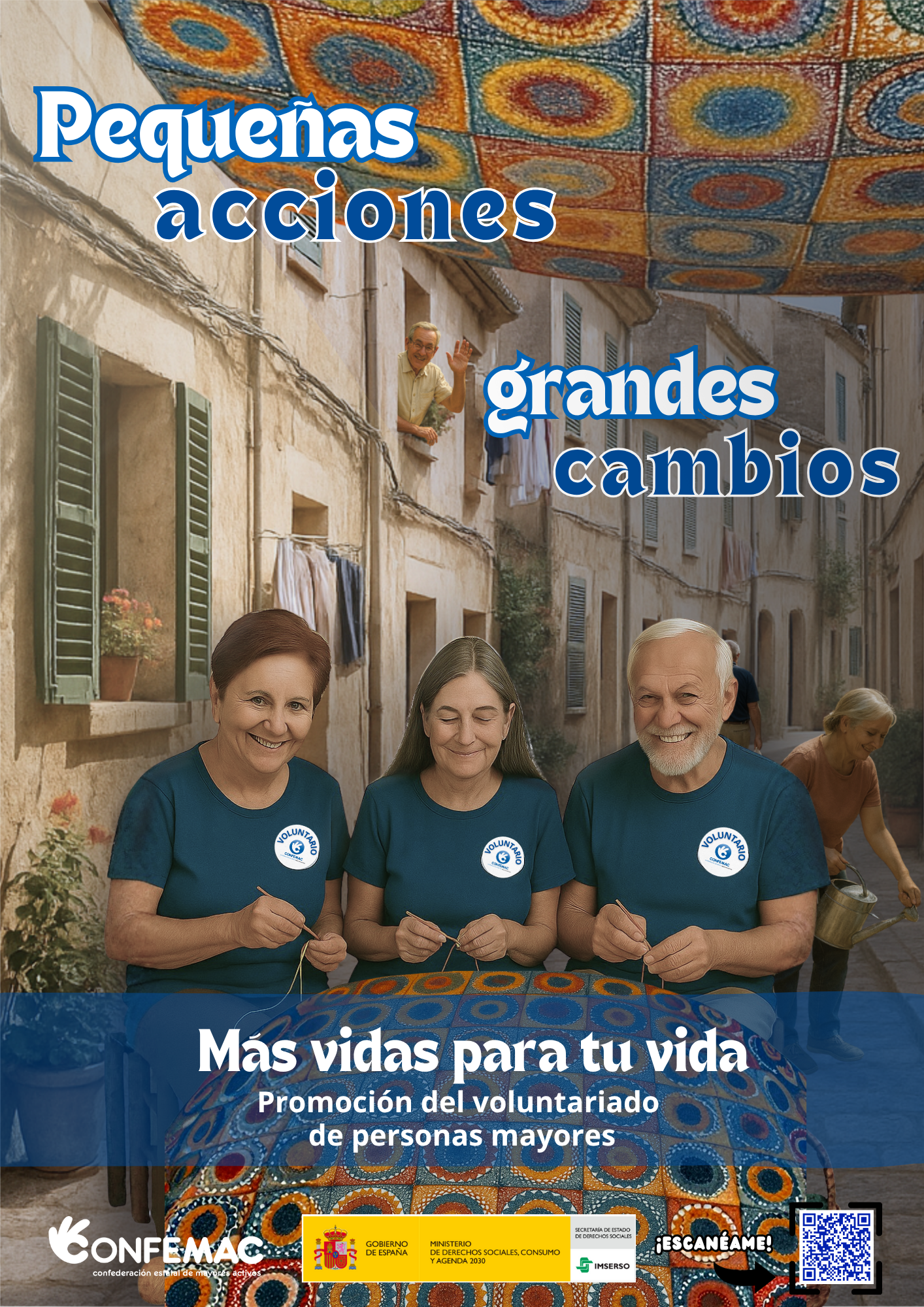 La Confederación Estatal de Mayores Activos (CONFEMAC) presenta una nueva campaña dentro del programa estatal “Más VIDAS para tu VIDA”, financiado por el IMSERSO, que pone el foco en el poder transformador de los pequeños gestos realizados por personas mayores en acciones de voluntariado. Con el lema “Pequeñas acciones, grandes cambios”, esta cuarta campaña subraya cómo una contribución sencilla puede convertirse en la semilla de un impacto social profundo, duradero y lleno de sentido.