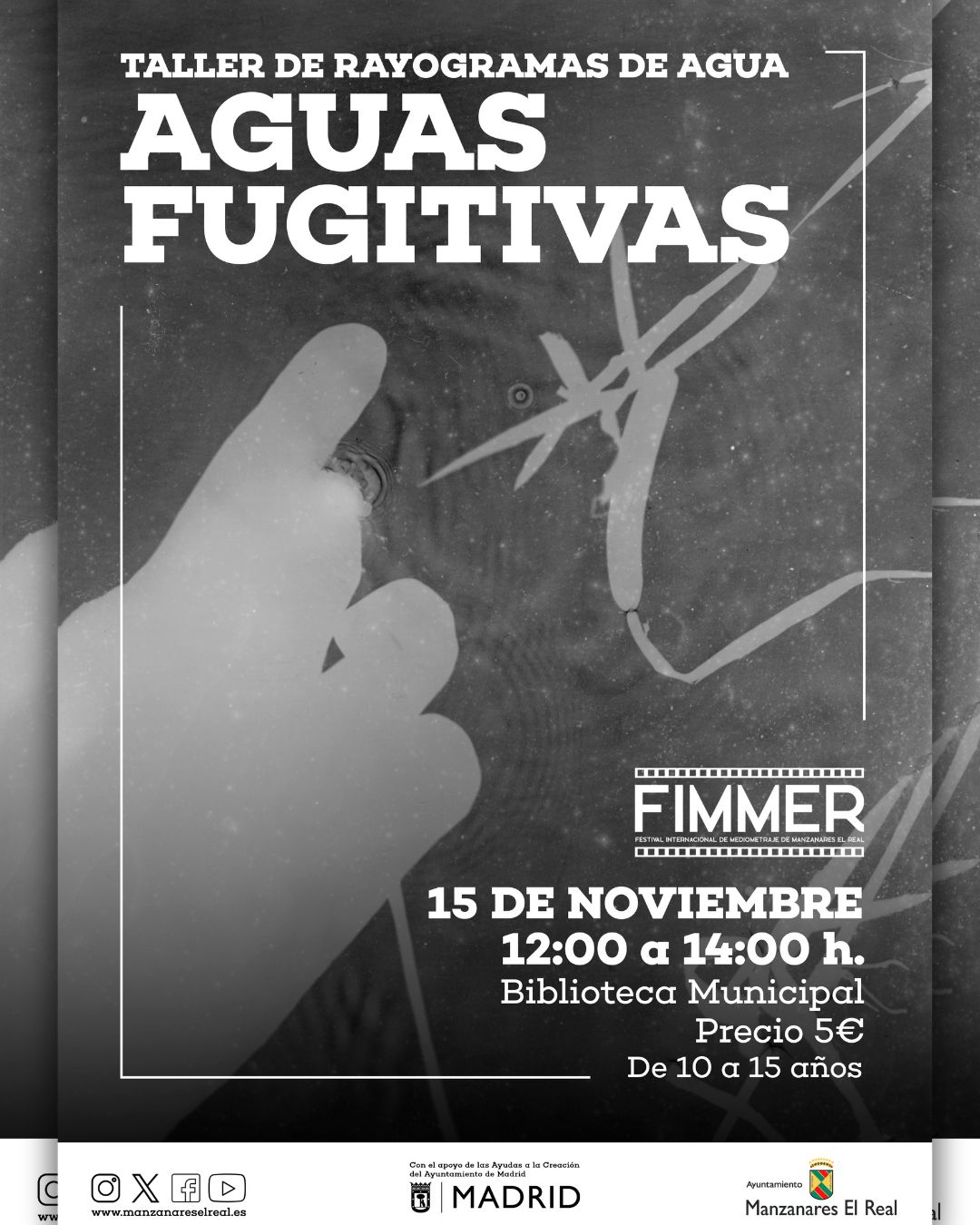 También, habrá un taller infantil (niños de 10 a 15 años), como el impartido por Deneb Martos y Ana Paes: Aguas Fugitivas, taller de rayogramas de agua, en la Biblioteca Municipal «Concha Méndez» (C/ Cañada 26) de Manzanares (precio de la actividad: 5 euros) Será el sábado 15 de noviembre a partir de las 12h.