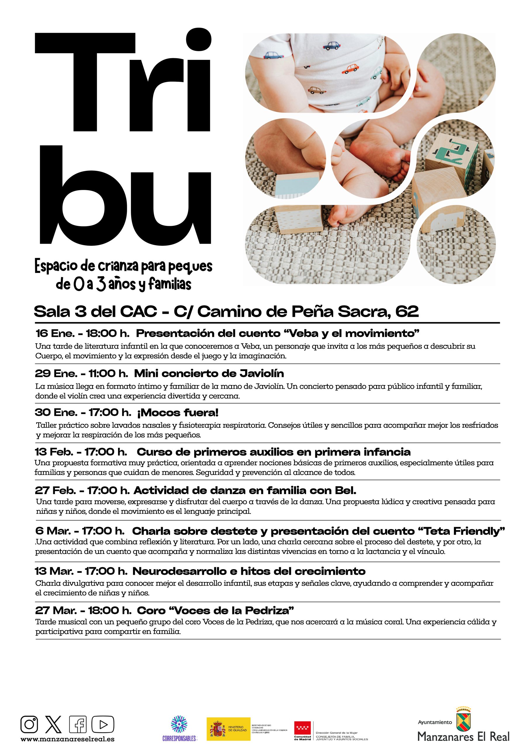 Tribu: Espacio de Crianza, a través de la Concejalía de Juventud, presenta una nueva programación pensada para acompañar a las familias en la crianza, el cuidado y el desarrollo de la infancia. Un espacio de encuentro donde compartir, aprender y disfrutar juntas y juntos a través de propuestas culturales, formativas y lúdicas.