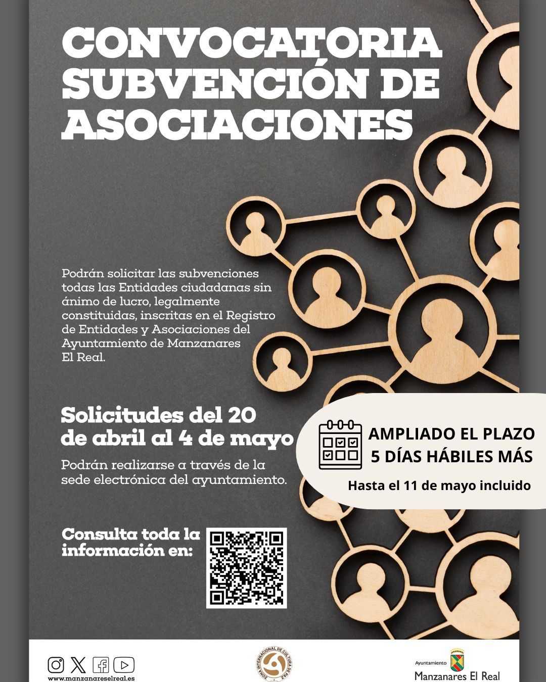 Las solicitudes se presentarán hasta el 11 de  mayo de 2026, en la sede electrónica del Ayuntamiento de Manzanares El Real,