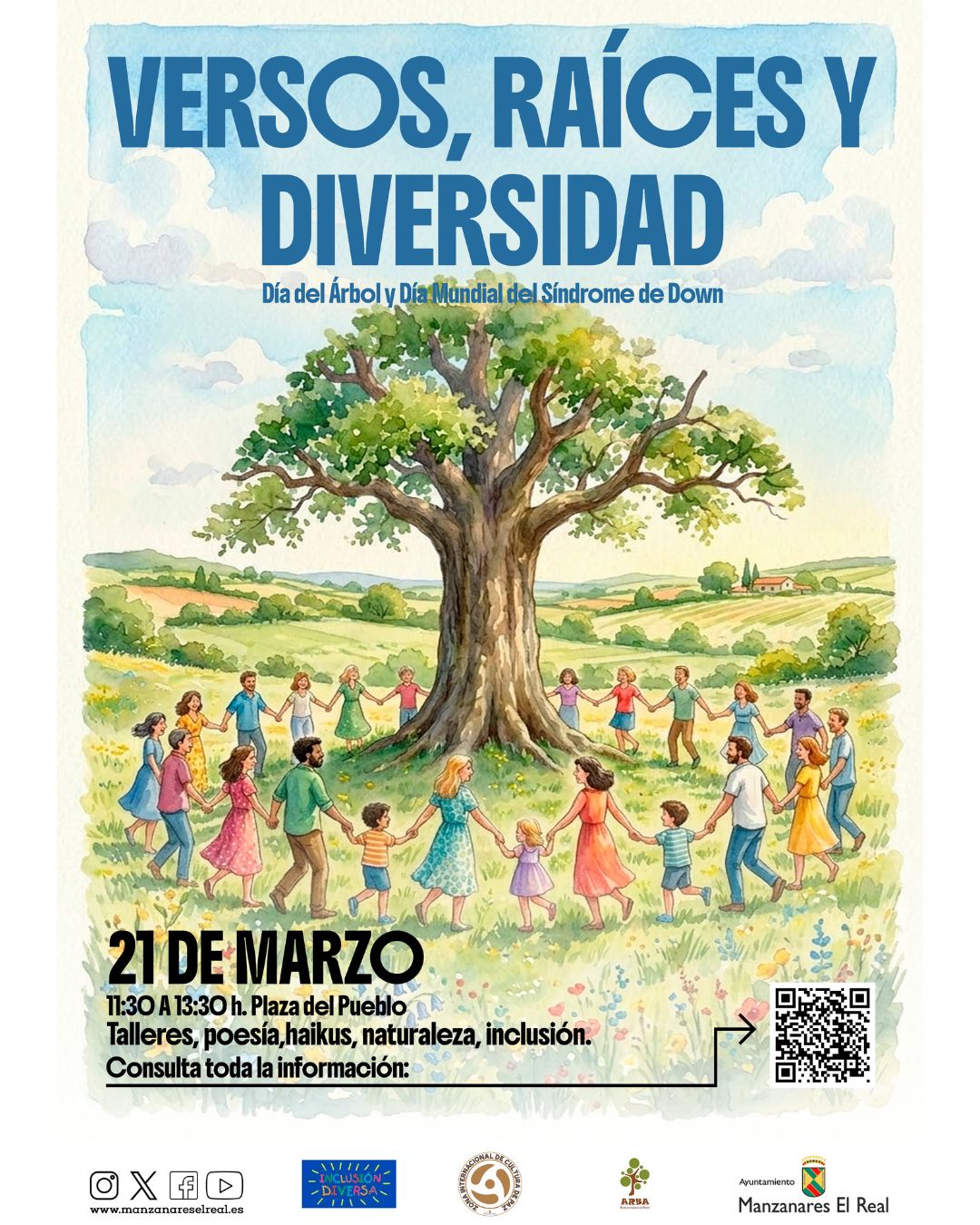 La jornada contará con el impulso de ARBA Manzanares El Real (Asociación para la Recuperación del Bosque Autóctono) y la Asociación Inclusión Diversa. Ambas entidades han diseñado una programación que busca sensibilizar a las vecinas y los vecinos sobre el cuidado del medio ambiente y la importancia de construir una sociedad más inclusiva a través de la expresión artística.