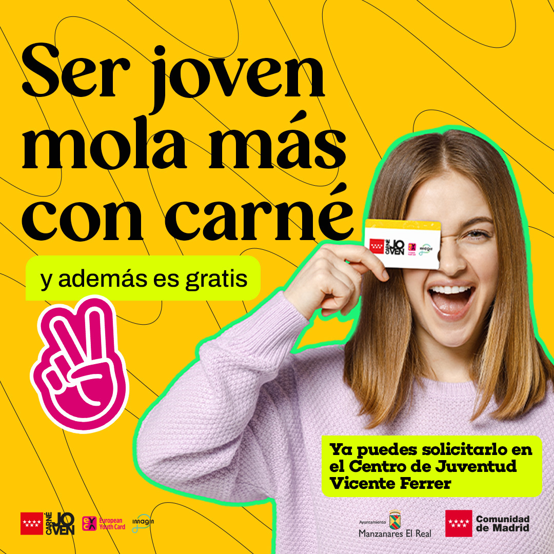 El Carné Joven Comunidad de Madrid es una herramienta útil que abre puertas a múltiples oportunidades, facilitando el acceso a actividades, recursos y ventajas pensadas especialmente para la juventud. Aprovecha esta oportunidad y tramítalo ya sin salir de Manzanares El Real.